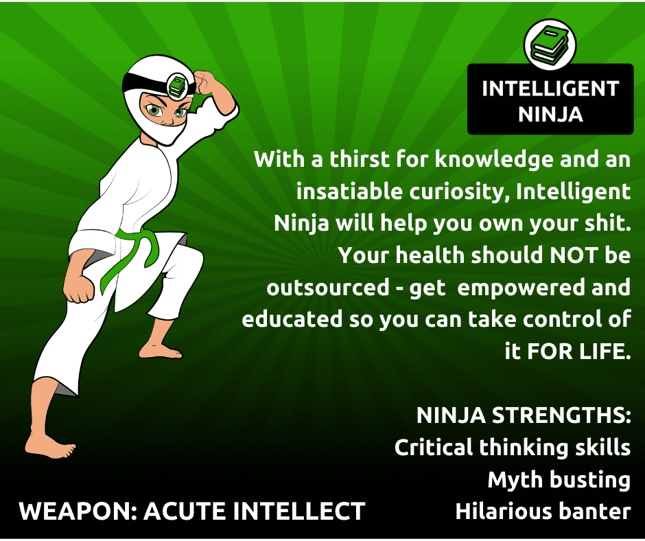 But I’d never really been able to verbalise it, or represent it visually until the branding genius that is G Sabini-Roberts came up with the idea of a team of Ninjas to represent every area of health I help people with, because they are an absolute fucking genius.